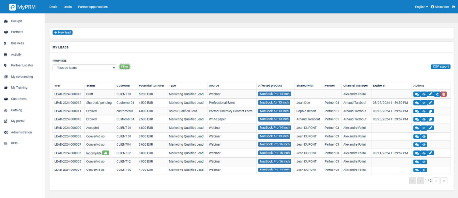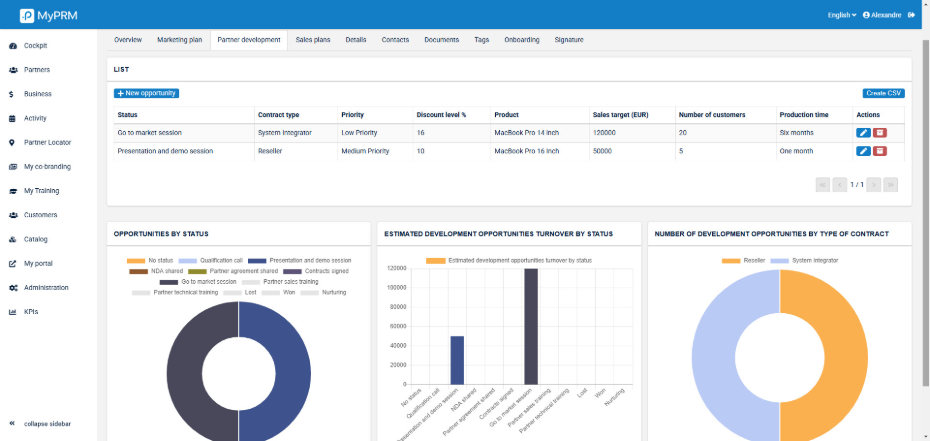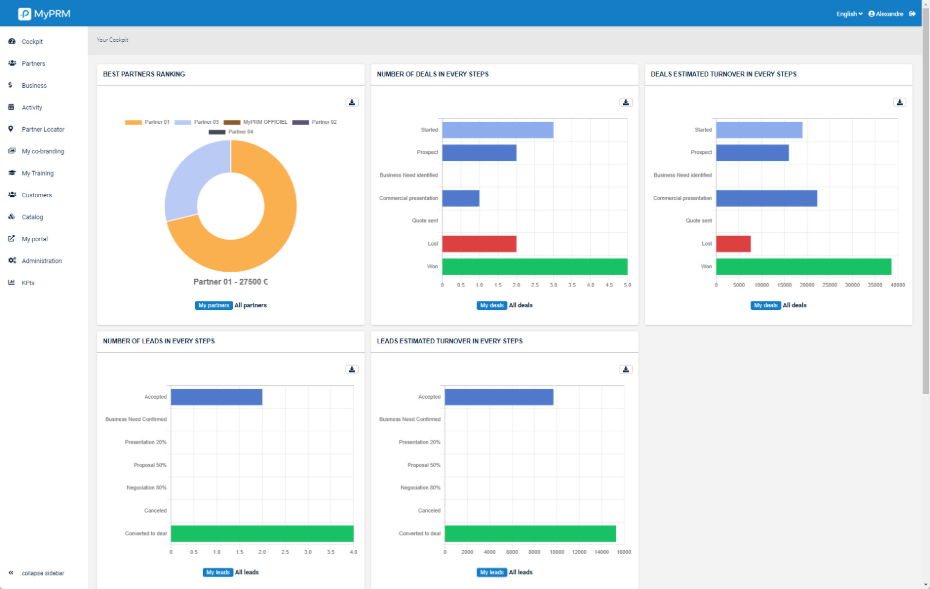 - Partner dashboard To Visualize your partners’ activities in the blink of an eye!